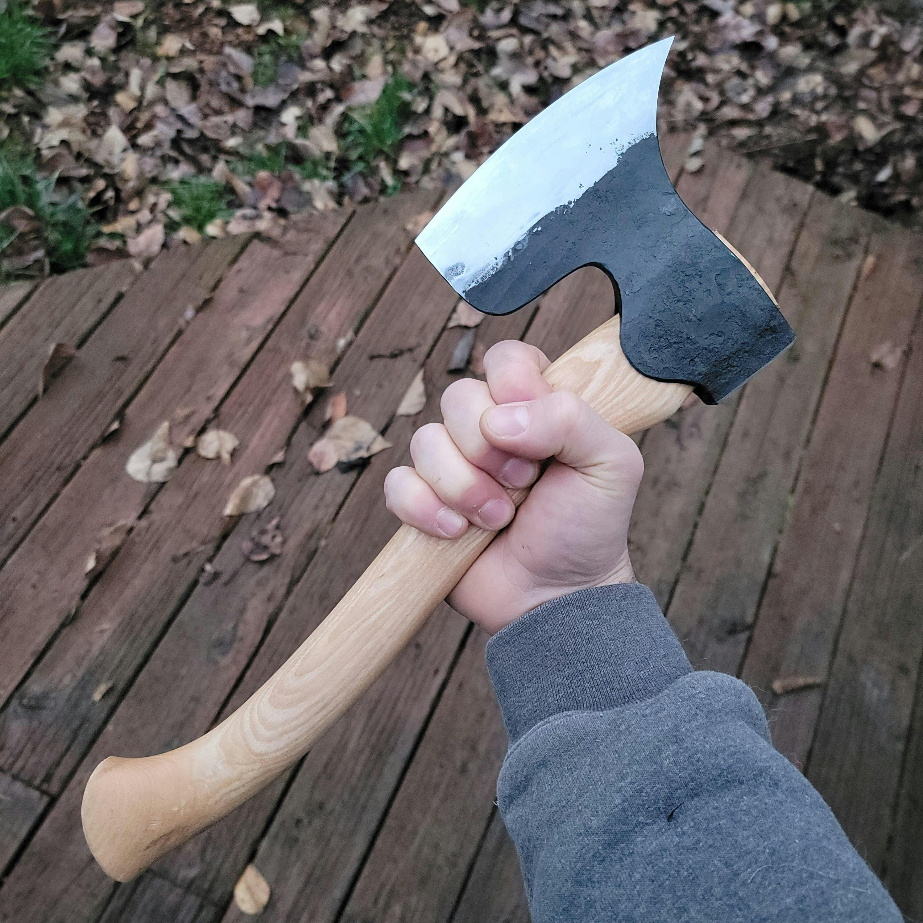 The axe in the photos is right-handed – if you're left-handed, feel free to request a custom version.